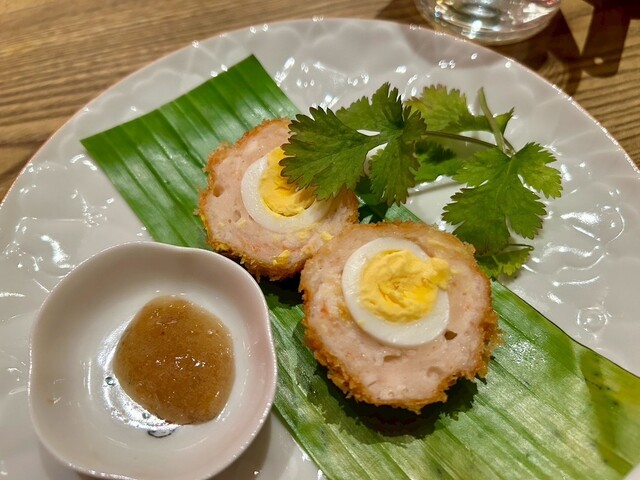 タイの代表料理が日本食材でやや和風に仕上げる。ちゃんと美味しい、バランスに驚く。神の舌をもつシェフ。普通の料理に飽きた人に良いと思います。楽しい時間でした!