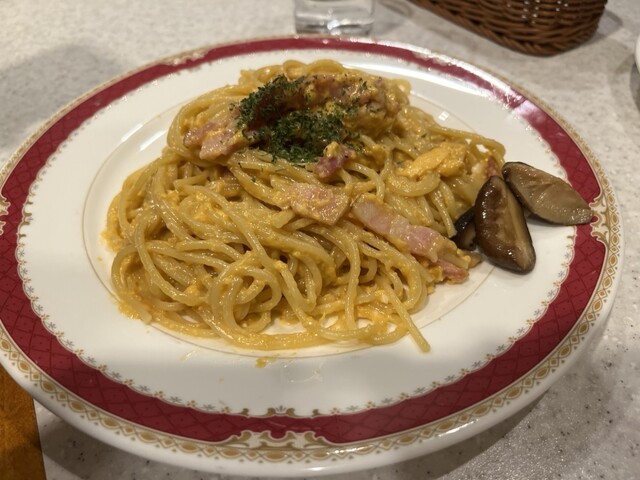 わたくしが選びましたのは、日本人の心を揺さぶる「バター醤油味」のパスタ。運ばれてきた瞬間、焦がし醤油の香ばしさとバターの芳醇な香りがふわりと立ち昇り、思わず背筋が伸びるような心地よい刺激を覚えました。麺は驚くほどもっちりと弾力があり、そこに絡みつくソースは、コクがありながらも決して重すぎず、まさに計算し尽くされた調和……まさに職人技の結晶でございます。