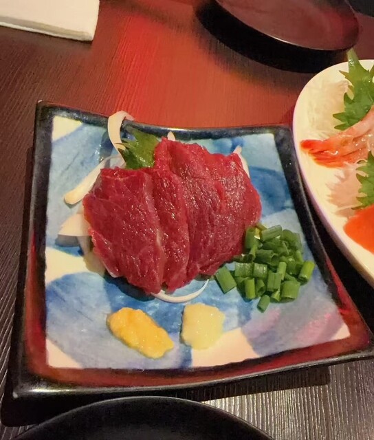 あと、馬刺しも頼んだんだけどこれが意外と食べやすくてびっくり。クセがなくて、赤身の旨みがぎゅっと詰まってる感じ。薬味と一緒に食べるとさっぱりして、箸が止まらなかったです…!
