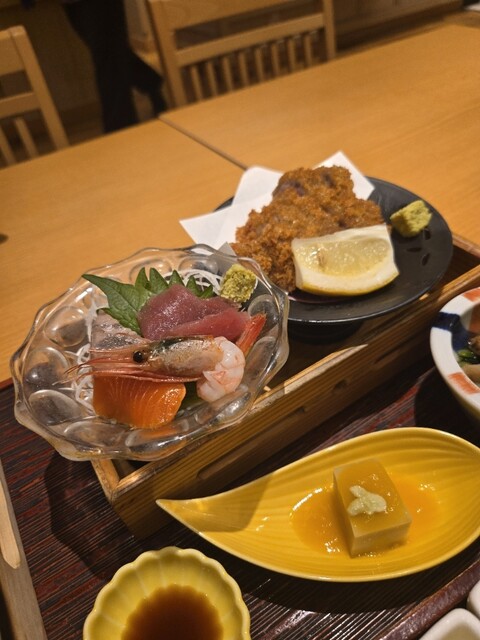 サクッとした衣をまとったジューシーな牛カツに、新鮮なエビやマグロのお刺身。