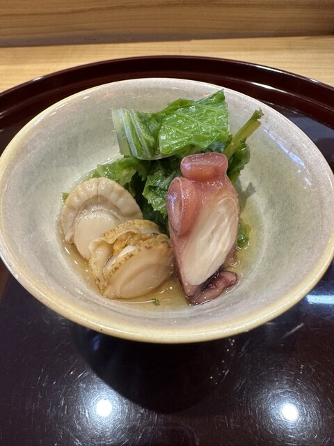 先付は魚介が非常に柔らかく、出汁が強めに効いていて大変美味しかったです。