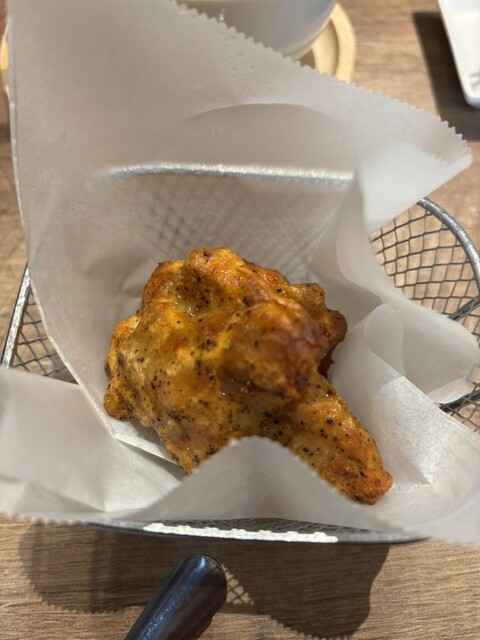 サイドメニューのチリチーズポテトとビールで乾杯! みんな笑顔になるね〜美味い!
