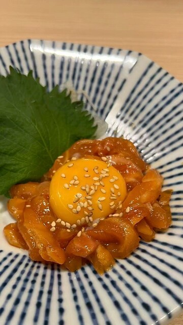 生サーモンのユッケ 715円
