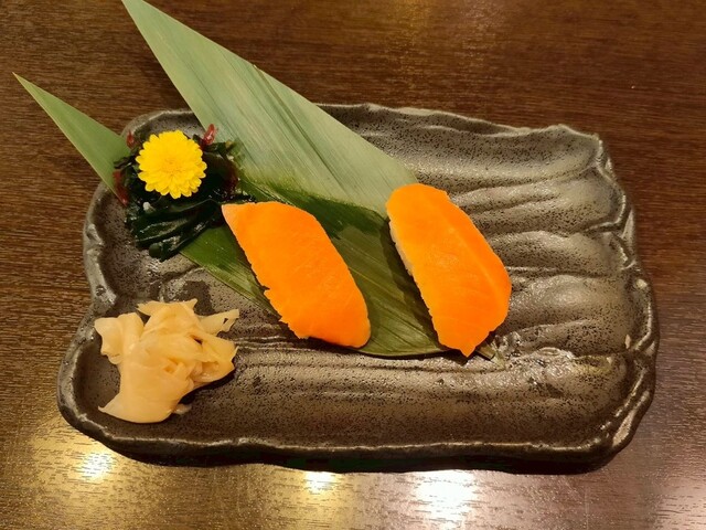 サーモンの握り寿司は身が柔らかく、口当たりが良いので食べやすく、何貫でも楽しめる印象でした。