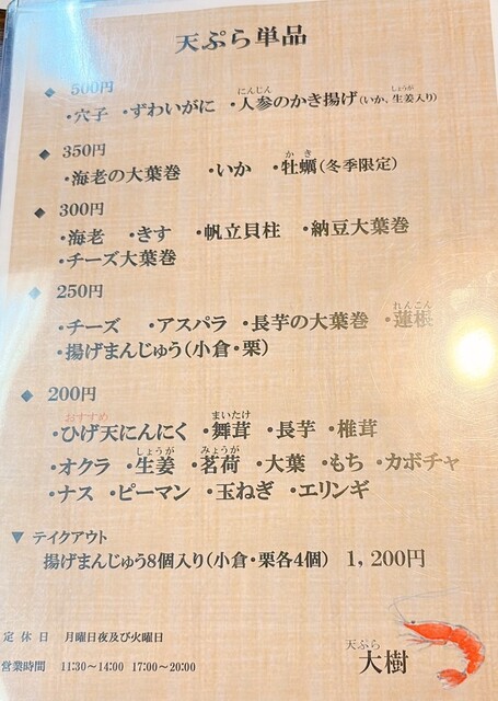 天ぷら定食〔並盛〕 ¥2,900 卓上セット