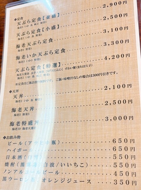天ぷら定食〔並盛〕 ¥2,900 海老