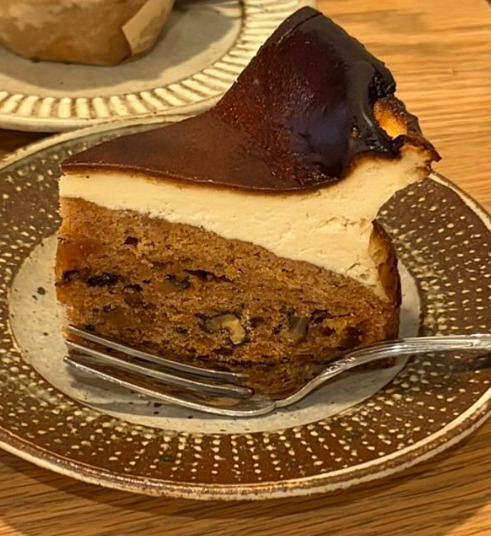 キャロットケーキはホロホロ食感で、大粒の胡桃やイチジクの自然な甘さがたまらない!これだけでもメニュー化してほしいくらい好み...