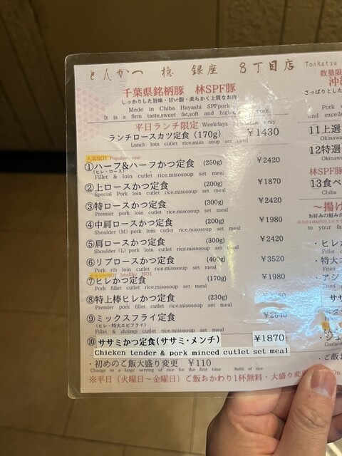 13. 食べ比べロースカツ定食を注文。