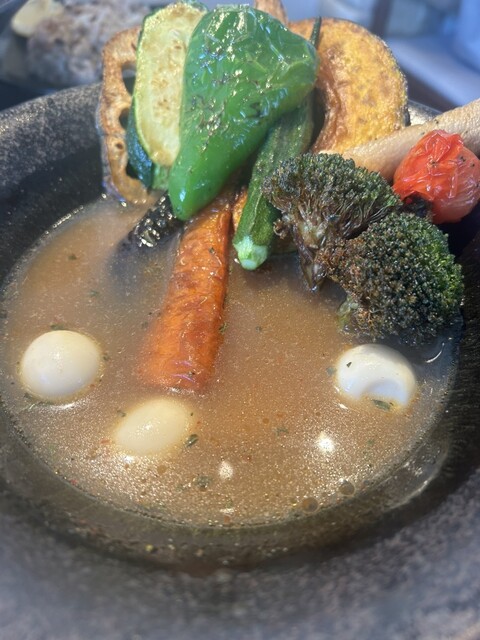 野菜のひとつひとつが大きく、スープの中にはじゃがいもが入っていました。