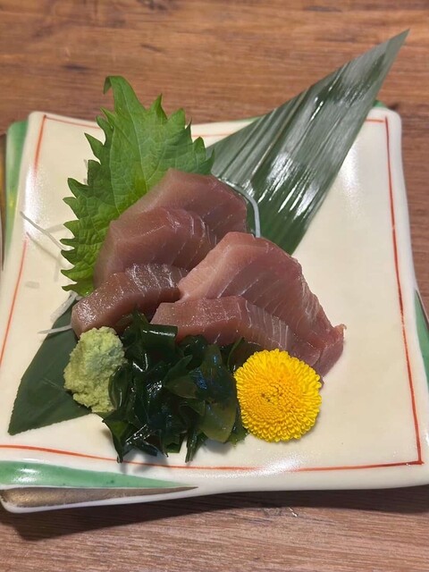 まずはマグロの刺身から。切り付けがきれいで、角が立った見た目からして鮮度の良さが伝わってくる。口に入れると水っぽさは一切なく、赤身の旨みがじんわり広がるタイプ。脂に頼らない味わいなので、わさびを少し効かせるとキレが増し、最初の一皿として申し分ない。