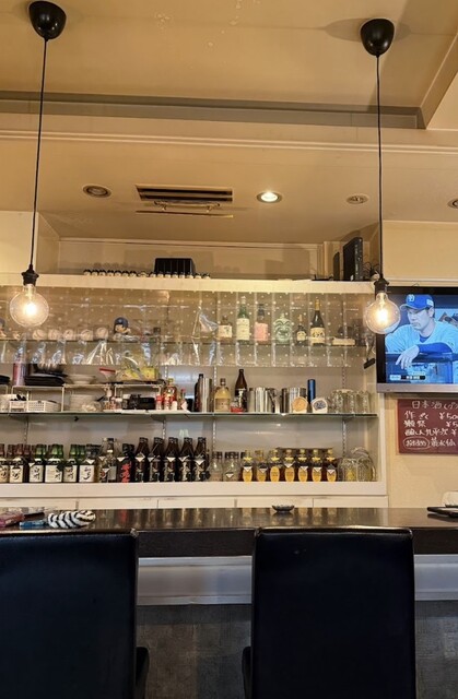 静かに飲みたい夜に選びたい一軒。カウンター越しに並ぶ日本酒の瓶を眺めながら、ゆっくりと杯を重ねる時間が心地よい。
