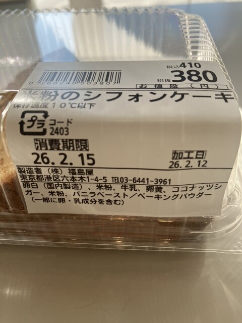 新発売の米粉のシフォンケーキ、