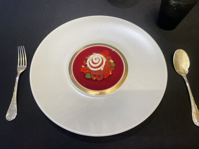 懐かしさを覚える味。かつてコンビニで少ないお金を握りしめて買ったパチパチとするお菓子。まさかここで食べるとは思わなかった。ロゼシャンパンの香りがふわっとして素晴らしかった。