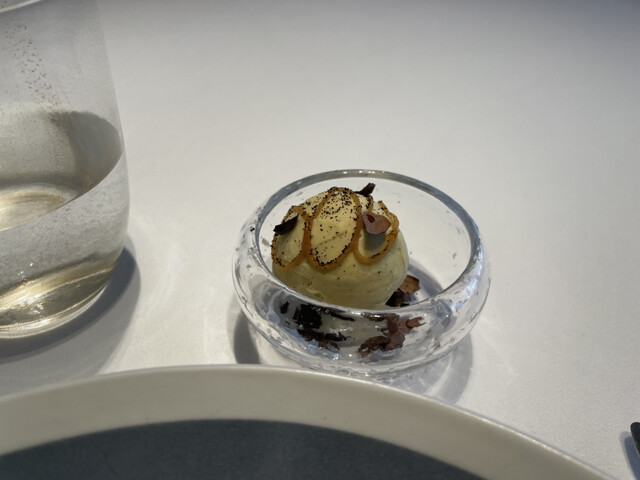 ここで口直し。ソルベと上に乗っているフィンガーライムが口の中をリセットさせてくれる。