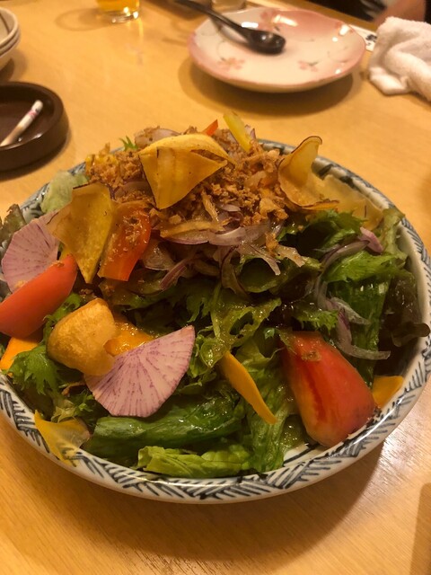 JR神田駅から居酒屋が多く立ち並ぶ所を通り抜け、徒歩で15分ほどのポツンと佇む、しかし存在感はありました。今回は少し早めの会社の忘年会で利用させてもらいました。コース5000円のお任せでした。