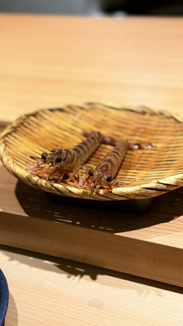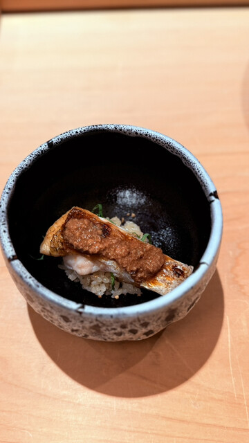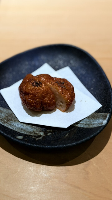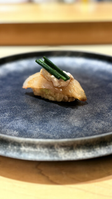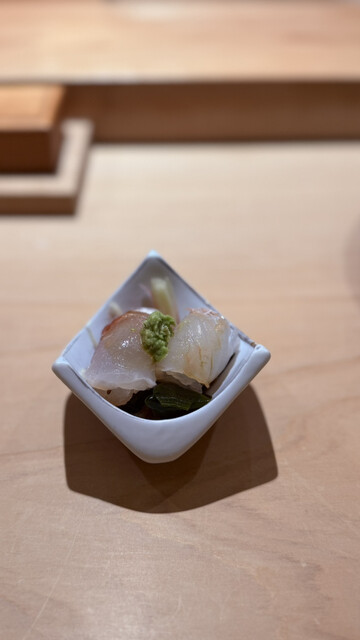 すし陸での2回目のひとときは、前回を上回る感動と幸福感に満ちた素晴らしい時間となりました。まずはしじみの旨味を極限まで濃縮させたお出汁で胃を温めることから始まります。能登産の青ナマコは土佐酢と鬼おろしでさっぱりと仕上げられ、食感の対比が鮮やかです。白身の食べ比べでは、締めたてのひらめの弾力と、5日間熟成させて旨味を凝縮させたほうぼうの昆布締めの対比に驚かされました。長崎産の紅瞳は小丼仕立てで、焼いた身と酒蒸しにした肝、さらに大葉と胡麻の香りが重なり合う至福の一杯です。子持ちヤリイカの甘い煮込みや、半生の状態に仕上げた氷見産鰤のしゃぶしゃぶは、温度管理の緻密さが伝わる逸品でした。低温でじっくり焼いた真鱈の白子は、出汁ポン酢との相性が抜群です。自家製のさつまあげや、甲州の白ワインに漬け込んだカラスミといった酒肴も、丁寧な手仕事が光ります。握りに移ると、赤酢3割、米酢7割という絶妙な配合のシャリが、ネタの輪郭をくっきりと浮き上がらせます。淡路産の真鯵、柚子胡椒でアクセントをつけたさよりに続き、本日のイチオシであるカワハギが登場しました。濃厚な肝が乗せられたその姿は冬の風物詩そのもので、シャリと溶け合う濃厚な旨味は言葉を失うほどです。65度で7分間低温調理された車海老は驚くほど甘くプリプリで、北海道産キンキの炙りは玉ねぎバター醤油という斬新な組み合わせが光ります。メジマグロのたたきや三厩産の大トロは、脂の融点が計算された完璧な口溶けでした。最後を締めくくる煮蛤は、蜂蜜のつめが優しく寄り添い、レアな食感と山葵の刺激が絶妙なバランスを保っています。大将の温かな人柄と最高の料理、そして細部まで行き届いたおもてなしに心底癒やされました。また季節を変えてお伺いしたいです。