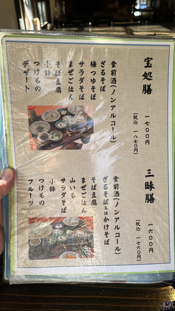 熊本・阿蘇産のそば粉と自家製のそばの実を使用した手打ち蕎麦をいただく事ができます