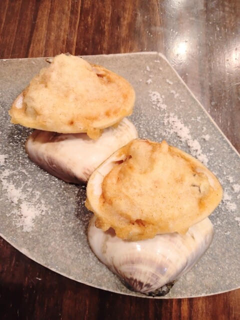 ハマグリを殻ごと揚げた天ぷら