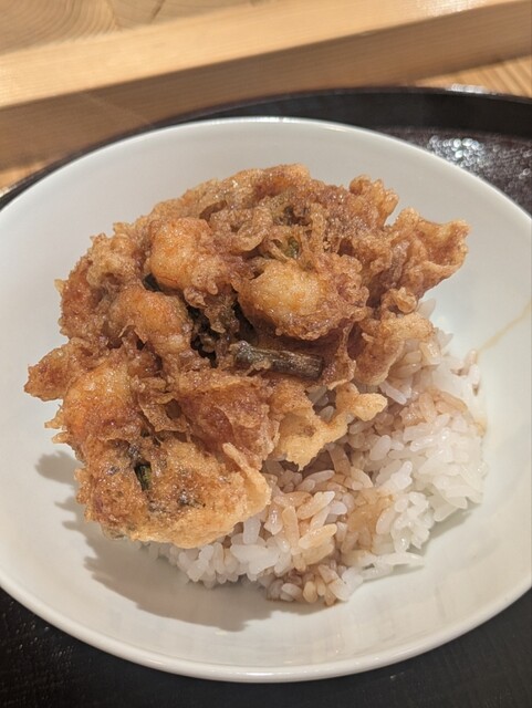 ・締めのお食事では、かき揚げ丼、白子天丼、天茶の3種類をご案内いただいていたのですが、天茶に「うーん」と悩んでいたところ(もっとガッツリ頂きたかったため)、卵天丼のご提案をいただきました。また、白子の天ぷらだけを頂きたいというリクエストにも、二つ返事でご承諾されていました。