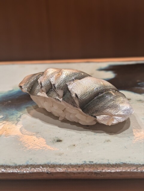 例えば、メイチダイは、咀嚼によって靭やかな力強さがゆっくりと和らぐと共に、シャリの粒立ちと芯に潜む甘みが舞い上がっていく。対してサゴシでは、口に触れた瞬間に蕩ける脂がまるでヴェールのように全体を包み込み、シャリの淑やかさが表現される。