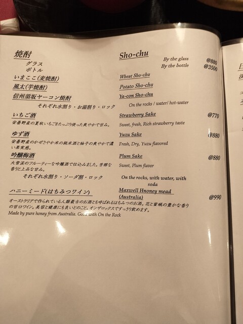 食前酒、ビール、冷酒