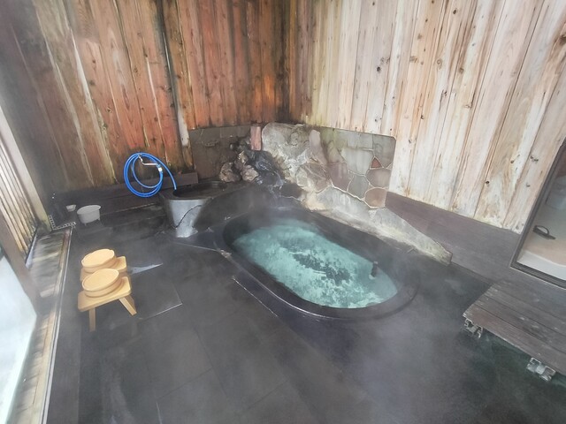 連れは家族風呂からタオルを巻いて廊下を走り男女別風呂に移動していった