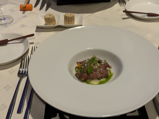 鴨胸肉が鮪の生ハムで巻かれた贅沢な逸品。
