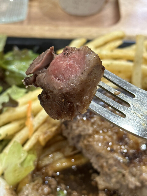 本当に美味しい肉食っている、ハンバーグです! 揚げ芋も最期までサクサクで旨い