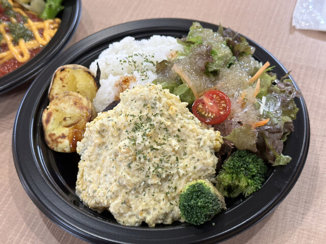 1,2分遅延して 1ポンドハンバーグ 半ライス 配膳…