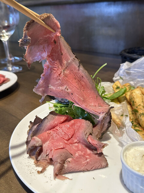 直近30分前に頂いた、足利マール牛さんのローストビーフは…草じゃ無くて…葡萄の絞りカスの発酵飼料と