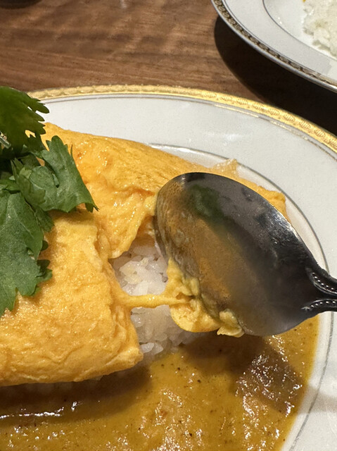 この美味しいチキンカレーが、こんな優しいオムレツ付いて1,500円は