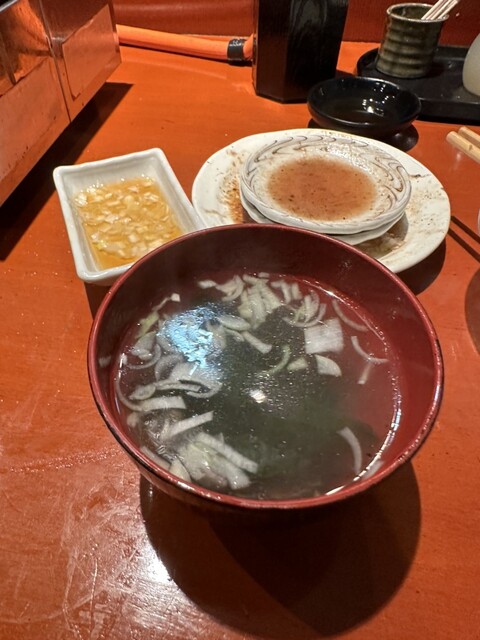 汁はエンドで、わざわざワカメスープを作って