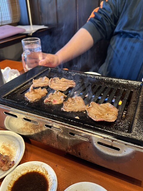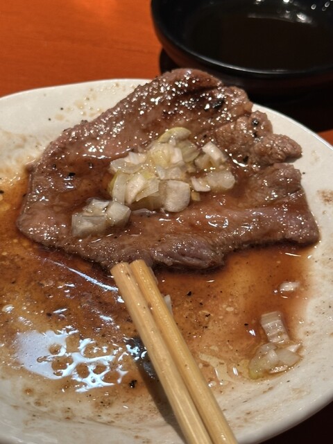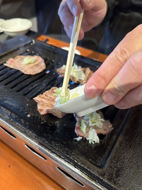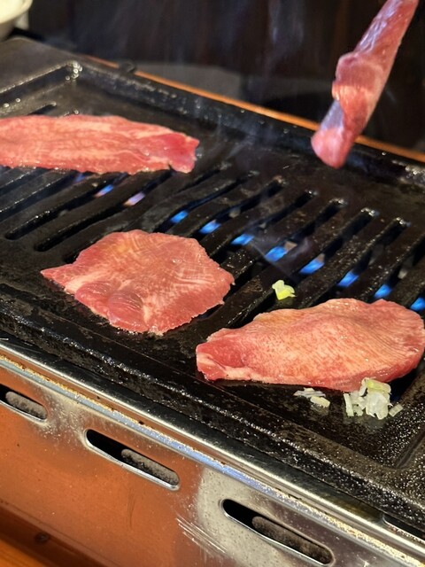 追加オーダーした牛タンの薄造りを、さっと炙って、