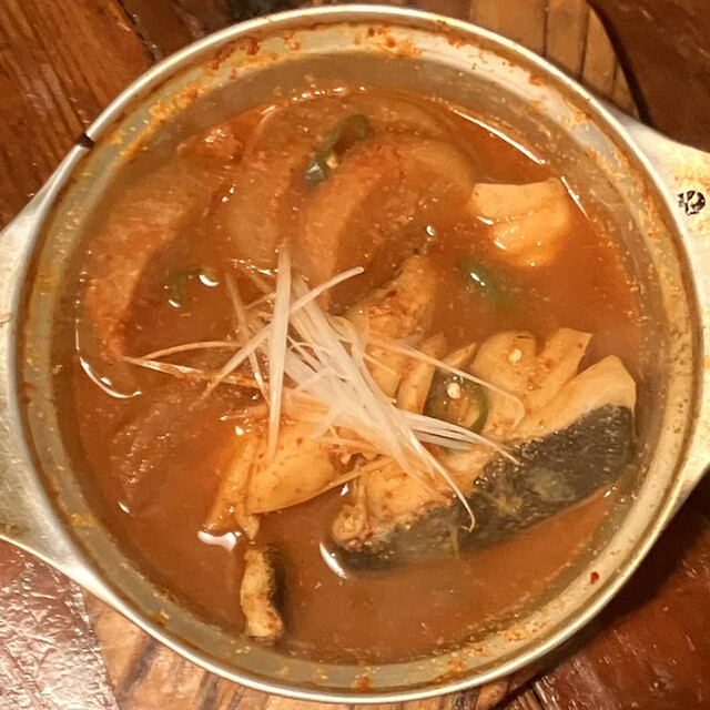 容赦ない量の青唐辛子がぶち込まれたデフォが最高なんだよね。鱈チヂミはたらだらけの感がありホクホクの鱈に悶絶。