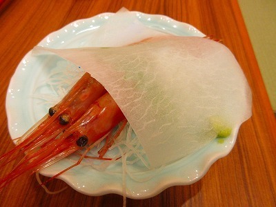 お刺身は甘エビと、かつらむきした大根の下に、イカが隠れています。