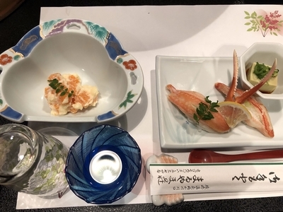 この日の宿泊は、兵庫県豊岡市、城崎温泉から車で5分ほどのリバーサイドまるやま荘です。宿泊確認のお電話を下さったお声の雰囲気が、ANZEN漫才のみやぞんにそっくり(*´艸`)宿に到着し、さっそく出てきて下さったご主人、お顔は似てませんが本当に話し方が、みやぞんそっくりで、けっこうツボにはまりました笑1階のお庭(ガラス越しなので、室内の灯りが写ってます)こちらで釣りを楽しむことができ、釣れたお魚は調理して下さるそうです。客室は6部屋、全室リバービュー。こたつが嬉しい~♪3つのお風呂は、24時間入浴可能で、家族ごとに貸し切りにされておりちょうど1階のお風呂が空いている・・・と教えて下さったのでさっそくお風呂へ。檜の半露天風呂です。シャンプー類が充実していました。食事は、個室のお食事処でいただきます。カニがたくさん並んでいて、テンション上がります!お宿の対岸は津居山港。津居山ガニを堪能しますよ~♪食前酒・カニ鮨付のこだわり前菜の四種盛地魚の造り盛茶碗蒸し焼きガニ香ばしく焼かれたカニ、ほくほくで最高です☆ここでお給仕して下さる方が、茹でカニについて尋ねて下さいました。2杯とも食べられそうか、無理なら明日の朝でもいいし、持ち帰りもOKと。とりあえずいったん下げますね・・・と。カニのてんぷらカニ鍋(お鍋のカニだけ、地カニではないそうです)殻は、足元に置かれた大きなガラ入れに落としていきます。グローブの身が取りやすい。何度もお手拭きを取り換えて下さるのが嬉しい。茹でカニは、1杯だけ食べることにしました。あま~い! 美味しすぎ(〃▽〃)雑炊と香の物カニのだしが、たっぷり出ています。〆はバニラアイスお腹いーっぱいになりました!夕食後は部屋飲み用に、自販機でビールを買いましたが、小売価格のまま。良心的!!城崎温泉まで送迎もして下さるそうなので、希望すれば温泉を楽しむこともできます。敷いて下さったお布団をめくると、電気アンカ(*´艸`)朝は2階の石風呂へ。朝ごはんも個室のお食事処にて。お味噌汁は、セコガニの半身が入っていて外子と内子がたっぷりでした!!昨夜の名残の、茹でカニもいただきました。朝からカニを味わう幸せ♡たまにはこんな贅沢もいいよね~(〃▽〃)