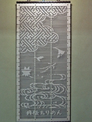 客室の床の間には、丹後ちりめんの型紙を掛軸にしたものが飾られていました。