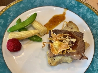 焼物:黒毛和牛とフォアグラミルフィーユ