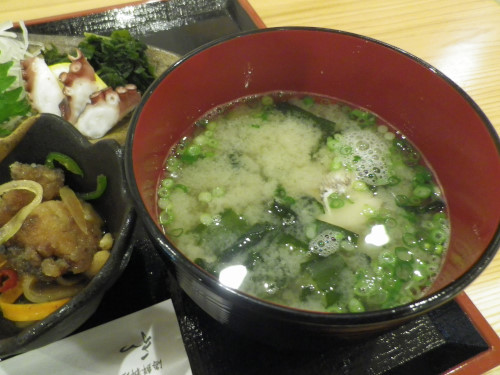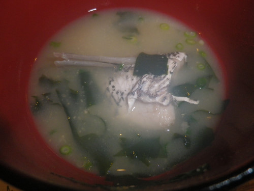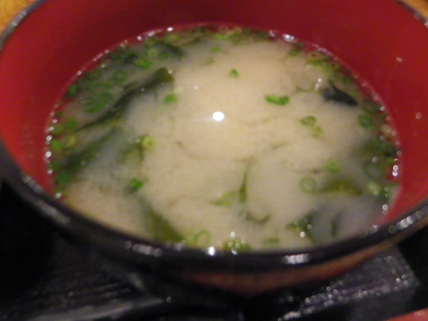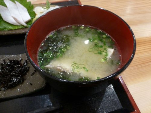 味噌汁は数種類の魚のダシ汁が詰まったというコクがある汁でタイのアラが入っていました。