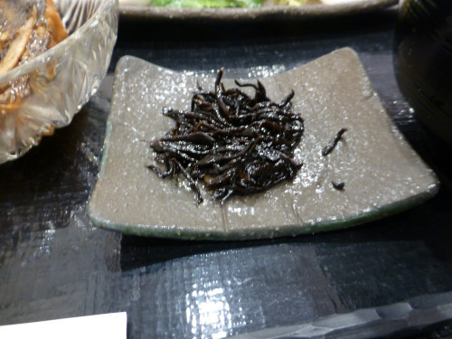 定食には小鉢とひじきがついています。小鉢はタコ、サバのフライの酢の物、これが美味しいです。