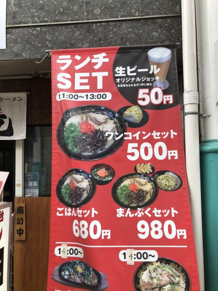 ワンコインセット(500円)とビール(50円)を注文します。