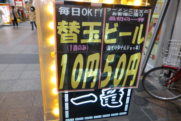 替玉10円、ビール50円・・・素晴らしい!