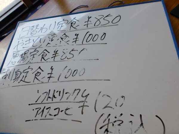 日替わり定食 、からあげ定食 、焼き鳥定食、刺し身定食があります。