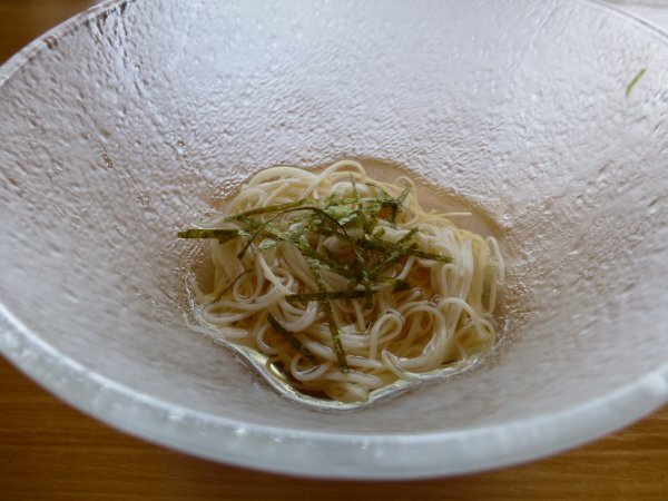 素麺は器も冷やしてます。イリコダシのツユでさっぱりいただけます。