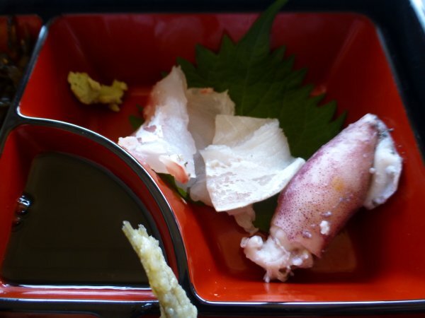 だし巻き卵、アジの南蛮、刺し身。