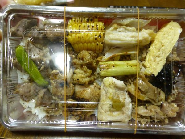 メインはモモ、ズリなどの焼き鳥がごはんの上にのっています。