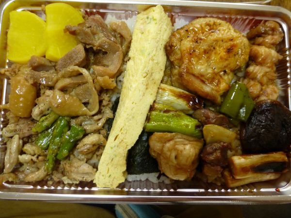 かしわ肉、モモ肉、焼き鳥、卵焼き・・・・。