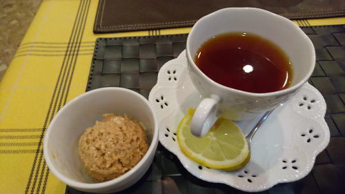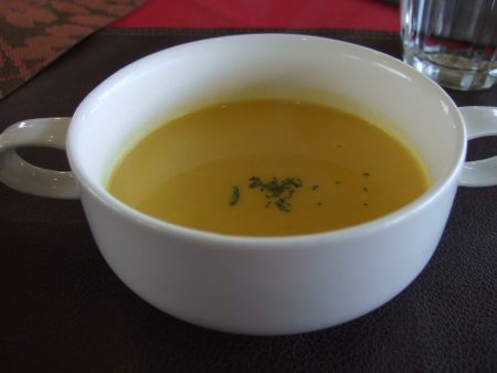 ペタペタとこねる音がする間、サラダとスープをいただきます。