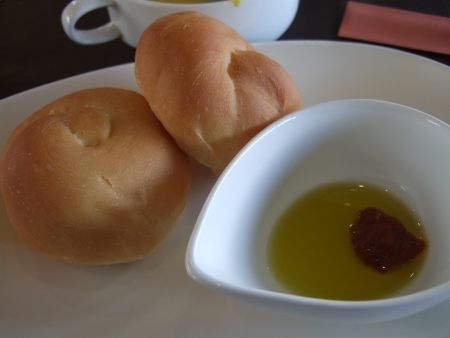 パンはオリーブオイルでいただきます。我が家の調理用と違ってすっきりした味わいです。