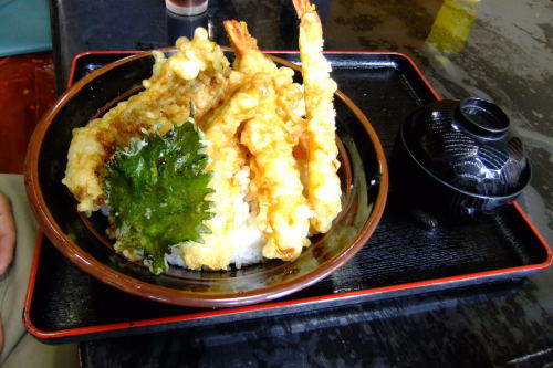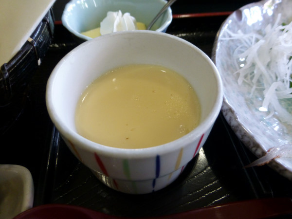 天ぷら、サラダ、茶わん蒸しがセットです。